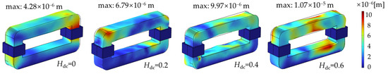 - Liu, C.M.; Li, X.H.; Li, X.J. Simulating the Vibration Increase of the Transformer Iron Core due to the DC Bias. Int. J. Appl. Electrom. Mech. 2017, 55, 423–433. [Google Scholar] [CrossRef]