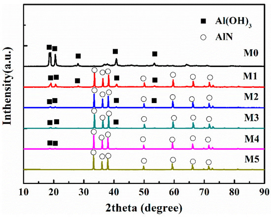 It is known that AlN will decompose rapidly and generates Al(OH)3 when it is in contact with water [15,32]. The specific reaction process is shown in Equations (1)–(3).