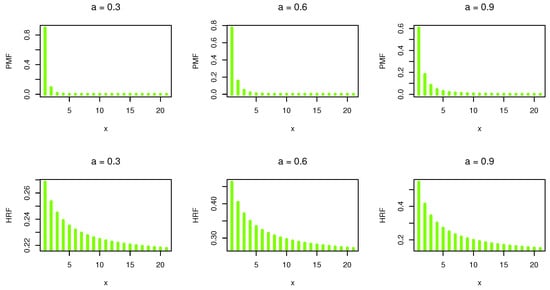 where . Figure 1 shows the PMF and HRF plots for different values of the DWPLT parameter.