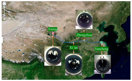 Deposits formation in the exhaust pipe during the vehicle’s operation equipped with SCR system. (Cities: Yancheng in Jiangsu Province, Zhengzhou in Henan Province, Xi’an in Shaanxi Province, and Xining in Qinghai Province).