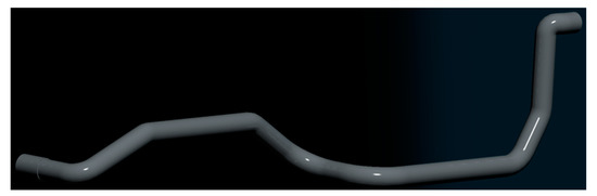 Due to the small diameter and large number of holes, it would generate a huge amount of calculation grids for the full model, which affected the calculation efficiency. In addition, this research focused on the formation of deposits inside the diesel engine exhaust pipe. Therefore, the solid structure was simplified in the modeling without considering the flow fields inside the catalytic converter. The geometric model of the diesel engine exhaust pipe is shown in Figure 4.