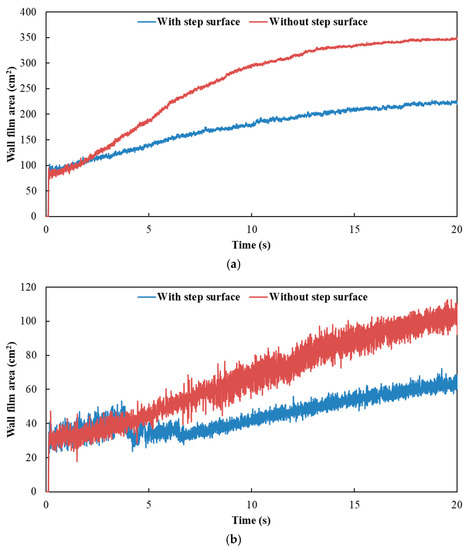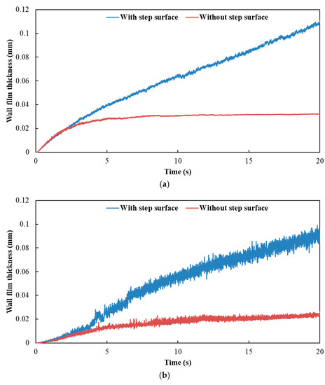 Influence of exhaust pipe with or without step surface on wall film mass.