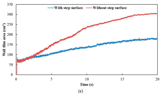 Influence of exhaust pipe with or without step surface on wall film area. (a) Case 1; (b) Case 2; (c) Case 3.