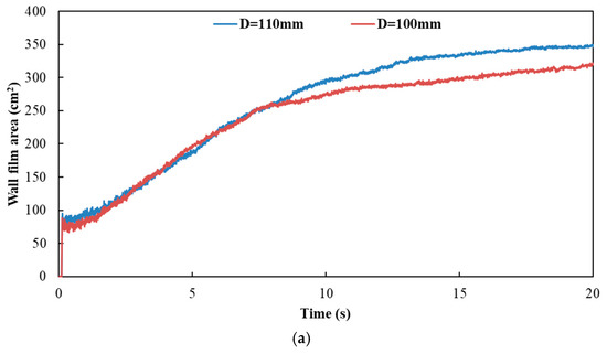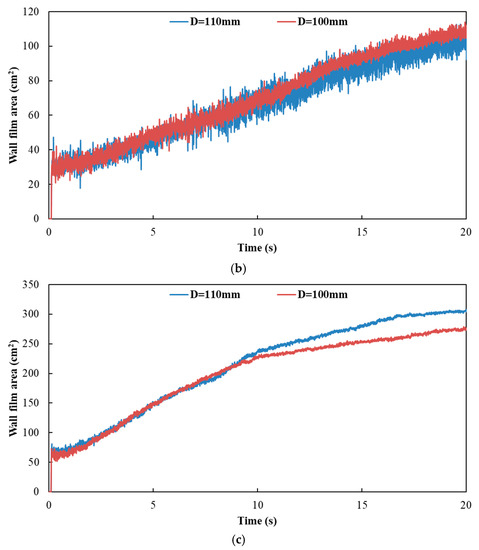 Influence of different exhaust pipe diameters on wall film area. (a) Case 1; (b) Case 2; (c) Case 3.