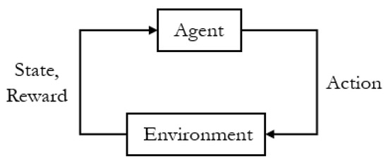 RL is a decision-making method that solves problems described as Markov decision processes. A RL system involves an agent interacting with an environment. In each step, the agent observes the state of the environment and then determines the action to be taken. The environment then returns the next state and a reward (Figure 1). The sets of states, actions, rewards, and next states at time step t are presented in the following form: (st, at, rt, st+1). The (st, at, rt, st+1) sequence of an episode with several time steps is called a trajectory. The goal of the agent is to maximize the reward. Therefore, RL attempts to develop a policy for choosing an optimal action based on states [10,11,12].