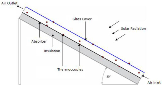 - Akhbari, M.; Rahimi, A.; Hatamipour, M.S. Modeling and Experimental Study of a Triangular Channel Solar Air Heater. Appl. Therm. Eng. 2020, 170, 114902. [Google Scholar] [CrossRef]