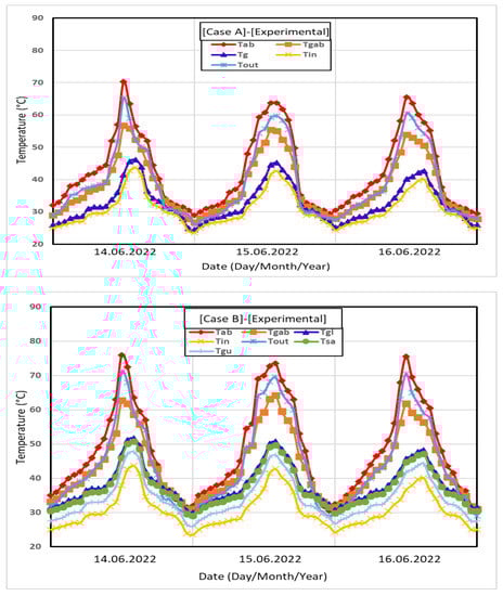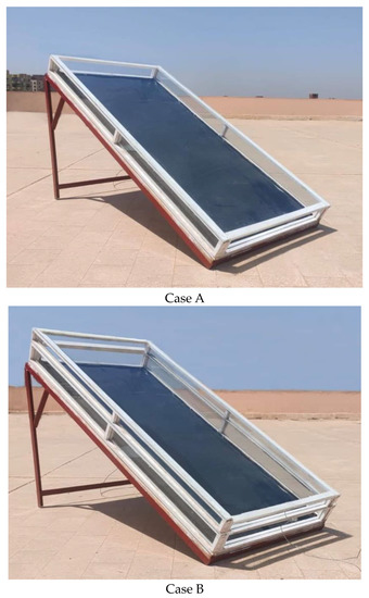 Figure 3 exhibits a photograph of the test rig. The two tested FPSAHs (Case A and Case B) were orientated in a southern direction to receive the most global irradiation through the experiments.