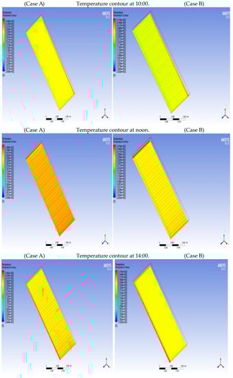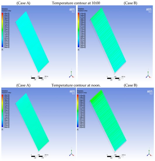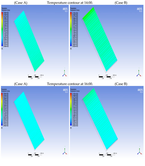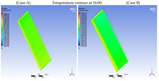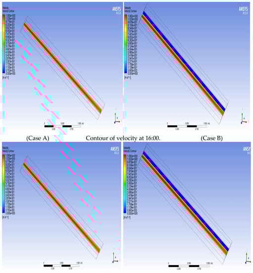 The operating parameters and models utilized in the simulation of Case A and Case B for the two tested FPSAHs in the FLUENT ANSYS solver are indicated in Table 2. After fixing the required input parameters and models, the solution was initialized. The time step was initiated at 0.001 s and reached 5.0 s, according to the ease of time and convergence needed to complete the solution of the simulation.
