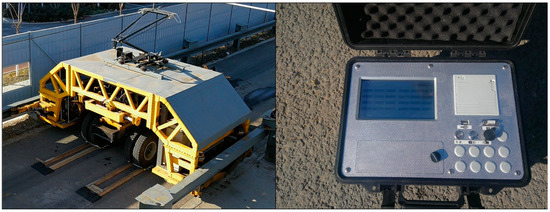 The NE-ALT is driven by a DC drive motor with a vehicle speed adjustment range of 0–30 km/h. The loading unit adopts the axle of a real heavy-duty truck and applies the load through hydraulic, with an axle load adjustment range of 200–280 kN. There are two types of loaded wheel axle combinations: single axle 4 wheels and dual axle 8 wheels. The lateral swing distance of the axle is ±250 mm. The constrained track adopts a dual-sided steel track structure, providing guidance and loading reaction force support for the device. The power supply system adopts a pantograph network contact power supply. The device detection signal is transmitted by the wireless transmission system to the upper computer for remote control. This system can achieve automatic high-speed cyclic loading of various road materials and structures, with functions of variable load and adjustable speed. The NE-ALT controllable parameters are the motor speed and the hydraulic pressure, which correspond to the vehicle speed and axle total load, respectively.