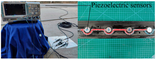 The road dynamic weighing system based on piezoelectric sensors developed by Zhao et al. [38], as shown in Figure 8, was embedded in the test road, which can be used for the dynamic weighing test of the device. In order to avoid the influence of irrelevant variables, the buried position of the piezoelectric sensors was selected on the road section where the speed is stable, and the road roughness changes closest to the average value.