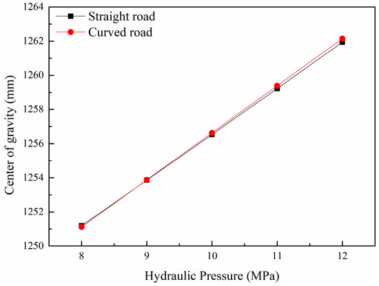 Z coordinate of the center of gravity under different hydraulic pressure.
