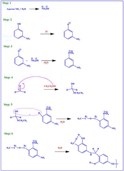meta-Aminophenol (C6H7NO), methylene oxide (CH2O), titanium tetrabutoxide (Ti(C4H9O)4), polyethylene oxide 600 (H(OCH2CH2)nOH), aqueous ammonia (NH4OH), methyl violet (C24H28N3Cl), and ethanol (C2H5OH) (≥99.8%) were purchased from Sigma Aldrich, St. Louis, MO, USA.