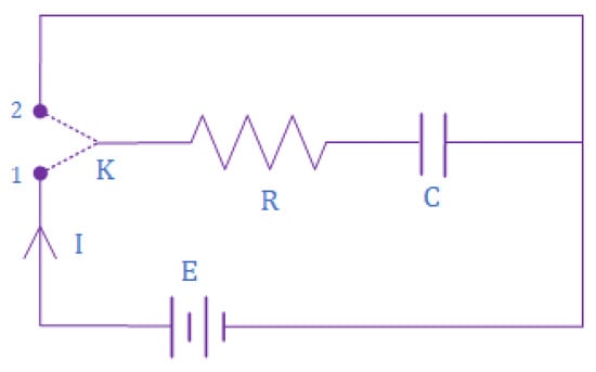 A series RC circuit is depicted in Figure 9. When the key is at position-1, i.e., the switch is closed, the capacitor starts charging up, and the charging current is maximum due to the entire voltage drop across the resistance R.