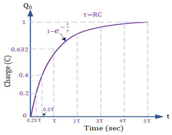When in Equation (7), 0.368 36.8% of the max. charge. Figure 11 shows the decaying of charge in the RC circuit.