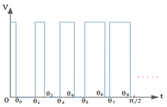 Here, p represents the point of each section of the curve, which are 0.25, 0.5, 1, 2, and 4. Putting the value of p into Equation (12), the duty cycle can be obtained as 0.22, 0.39, 0.632, 0.865, and 0.981. Therefore, the IGBT of ITPI can be operated with the switching pulse of these duty cycles to generate an exponential output waveform from 0 to π/2.