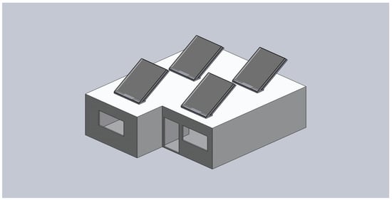 Four solar chimney modules were distributed on the roof of the house, as shown in Figure 3, with the aim of cooling the two rooms and the common area.