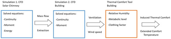 As future work, an analysis of the incorporation of a nonpassive system using different types of solar chimneys considering economic, ecological, technical, operational aspects, etc., with a more robust design for different economic conditions or needs, using different elements or techniques, such as evaporative cooling, will be experimentally tested.