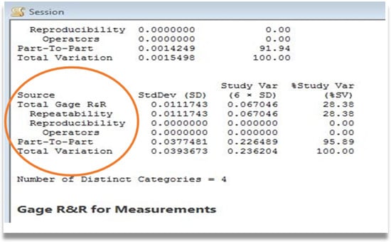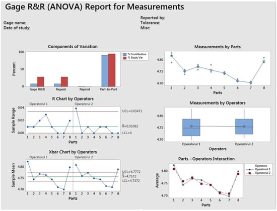 - Burdick, R.K.; Borror, C.M.; Montgomery, D.C. Design and Analysis of Gauge R&R Studies: Making Decisions with Confidence Intervals in Random and Mixed ANOVA Models; Society for Industrial and Applied Mathematics: Philadelphia, PA, USA, 2005. [Google Scholar] [CrossRef]