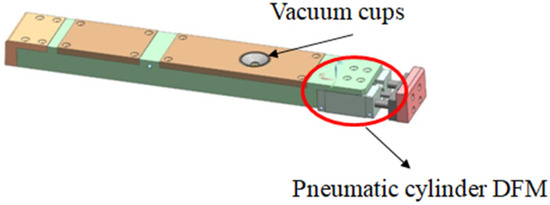 During the analysis phase, it was discovered that the press’s pneumatic cylinder, which prevents the steel sheet from being properly centered, was used to bend steel sheets laterally. The pneumatic cylinder was removed from the process to improve it, and a new vacuum cup was created to increase the locking force (Figure 20). After improvement, we achieved a good efficient centering and locking system during the edge bending operation.