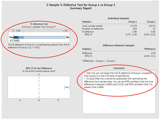 To determine whether the mentioned solutions are successful in lowering the amount of scrap, a before-and-after comparison analysis is required. For this comparison (Figure 23), we used two samples, and we can consider two hypotheses.