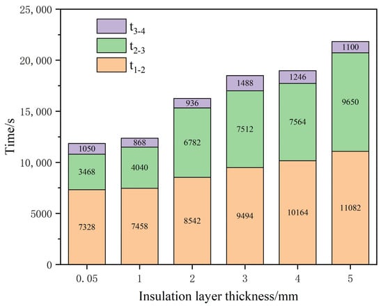 Relationship between heat propagation and transfer time of each insulation layer thickness.