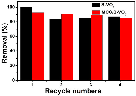 Recycling performance of S-VO2 and MCC/S-VO2 nanocomposites for MB degradation.