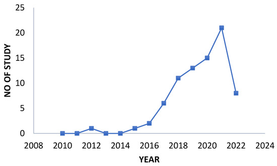 The distribution of the various publications that were selected for this research is presented in this section based on the selection criteria outlined in Section 3. The 65 studies were chosen to be used for further processing after the quality assessment technique was carefully followed. This study considered papers published written in English between the years 2010 and 2023 in journals and conference proceedings. This time frame was considered to accumulate many studies for this SLR. Figure 6 illustrates the distribution of the studies based on their publication years.