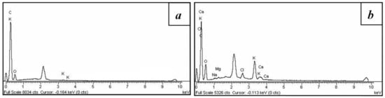 Figure 2a,b, shows EDX spectrum of AP and BR, respectively. In comparison to the EDX spectrum of AP, EDX spectrum of BR revealed the presence of alkali (potassium, sodium) and alkaline earth ions (magnesium, calcium) on surface which is accordance with Table 1, where is evident that BR have much more of these ions.