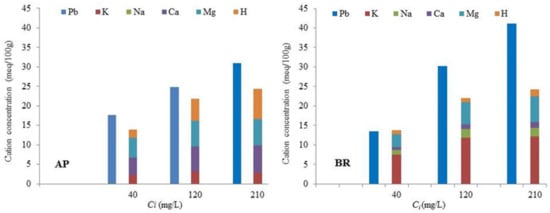 Cation exchange capacity (CEC) for AP and BR is 24.75 and 95.85 meq/100 g, respectively. BR has significantly higher CEC, due to the presence of potassium ions which are dominant ions in the exchangeable position. The study of sorption mechanism confirmed that ion exchange mechanism plays an important role during the process of sorption, and in case of the AP it was observed that the hydrogen ions are more exchanged with lead ions along with the rise of metal solution concentration.