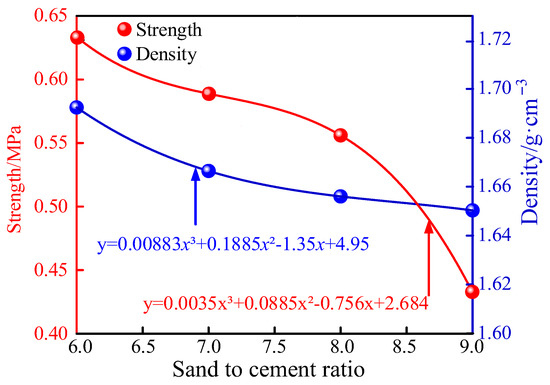 | Test | Sand to Cement Ratio | Paste to Ash Ratio | Maintenance Time | Density/ g·cm−3 | Compressive Strength/MPa | Elastic Modulus/ MPa |