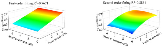 Effect of sand-to-cement ratio and paste-to-ash ratio on strength under different orders of fitting.