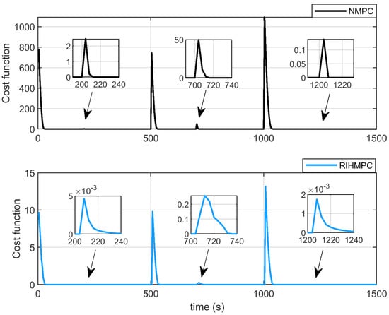 Cost function of both NMPC and RIHMPC controllers under a realistic scenario.