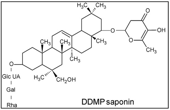 Structure of saponin compound of PS (DDMP: 2,3-dihydro-2,5-dihydroxy-6-methyl-4H-pyran-4-one) adapted with permission from Ref. [27]. 2015, Elsevier.