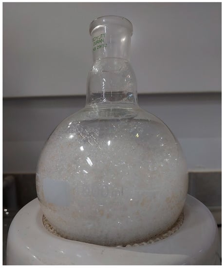 Two types of saponin are present in the PS: monodesmosidic and triterpene. It should be noted that these saponins are comparable to soybean saponins. Figure 3 presents the structure of the saponin component of PS. Moreover, the confirmation of the produced foam by the green surfactant extracted from the PS is shown in Figure 4. As shown in this figure, the produced foam is a clear indication of the presence of saponin in the chemical structure of the PS, which can be used efficiently for EOR applications [27,29].