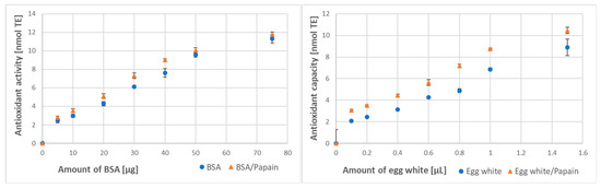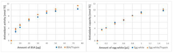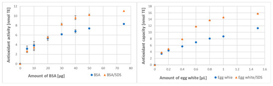 | Method of Assay | BSA Antioxidant Activity [μmol/g] | Egg White Antioxidant Capacity [μmol/mL] | ||