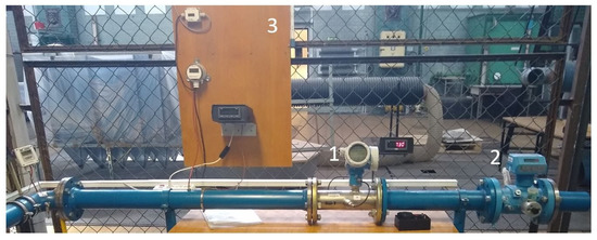 Furthermore, the turbine flowmeter indications were compared with the results of flow rate measurements performed using a very thin Prandtl tube, which was developed by dividing the cross-section into 6 rings of equal areas. This procedure added an extra layer of assurance to the accuracy and reliability of the results obtained from the turbine flowmeter. Figure 5 shows the vortex and thermal flowmeters installed in the flow system, which were carefully selected for their high accuracy and reliability in measuring flow rates.