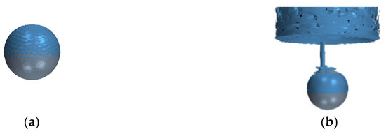 The meshing of computational domain is shown in Figure 4. The overlapping mesh method is used to calculate the mesh, and a set of overlapping meshes (grey mesh region in Figure 3b) is generated around the particles, which are synchronized with the six-degree-of-freedom motion of the particles. The background region is covered with a set of static meshes (i.e., background mesh, blue mesh in Figure 3b) to cover the entire computational domain. Particle motion equations and fluid control equations are solved in the overlapping meshes to obtain the force and motion characteristics of overlapping meshes, and only the fluid control equations are solved in the background meshes. At the junction of two sets of meshes, the data exchange is performed in a differential way to realize the overall calculation in the control domain. In this work, the diameter of overlapping mesh region is chosen to be twice the diameter of the particle.
