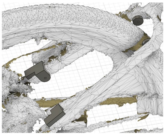 The post-processing actions continued with further simplification of the mesh file with the reduction of triangles and a split of the 3D body, leaving only the area that the designer requires as a reference for visualization and measurements. Figure 7 depicts the result of the aforementioned actions.