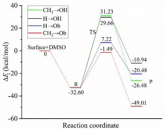 3.3.2. The Dissociation of DMSO on the Cu−Doped SBA−15 Surface