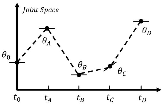 Iron roughnecks are a kind of hydraulic robot arm. Trajectory planning can make them run more smoothly. The current methods of trajectory planning mainly include cubic polynomial interpolation and quintic polynomial interpolation. For velocity-limited industrial robot point-to-point joint motion planning, cubic polynomial planning has the problem of discontinuous acceleration, while quintic polynomial interpolation can realize the smooth transition of acceleration [6]. Song, Q.S. et al. designed a trajectory planning framework for a six-axis robotic arm, which included manipulator kinematics and dynamics as well as a quintic polynomial interpolation algorithm, and designed experiments to verify the smoothness of the planned trajectory [7]. Yang, Y.L. et al. used a quintic polynomial trajectory and determined the optimal trajectory by minimizing the fitness function, and the stability of the manipulator operation was significantly improved using an improved genetic algorithm [8]. Wang D. et al. applied a quintic polynomial interpolation method to a tomato harvesting robot and improved the harvesting success rate [9]. Therefore, the method of quintic polynomial interpolation can effectively improve the smoothness of the robotic arm.
