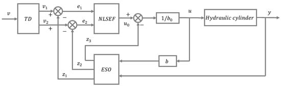 The ADRC consists of a TD, ESO, and NLSEF [34]. The TD smoothly approximates the generalized derivative of the input signal. The ESO estimates the output and total real-time perturbation. The NLSEF uses the total perturbation observed by the ESO to generate control variables, thus ensuring system stability. The principle of the ADRC is shown in Figure 9.