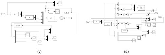 The simulation model of the controllers. (a) PID controller; (b) fuzzy PID controller; (c) ADRC; (d)TF-ADRC.