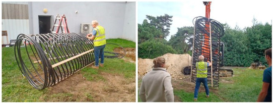 Installation of a spiral (earth basket) ground heat exchanger with a fibre-optic distributed temperature sensing system at the IUT Civil Engineering Student Laboratory (Bordeaux, France) pilot site (picture: Groenholland Geo Energy systems).