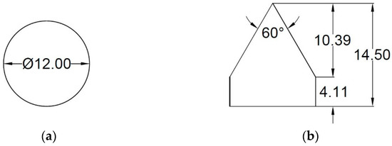 Projectile Geometry (dimensions in mm). (a) Spherical Projectile. (b) Conical Projectile.