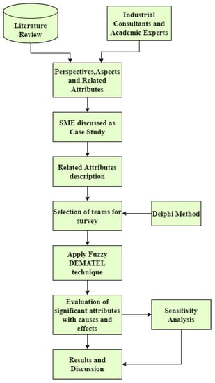 The structure of this article is as follows: Section 2 offers a framework for the product life cycle, the extension of each CP layer, the identification of perspectives, aspects, and attributes a case study of SME, and the fuzzy DEMATEL technique. Section 3 presents significant attributes for SMS: cause-and-effect interdependence relationships, practical significance, and sensitivity analysis. Lastly, Section 4 summarizes the findings.