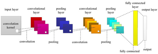 Convolutional neural networks occupy a very important position in deep neural networks and have been widely used in various fields. Convolutional neural networks were first proposed at the end of the 20th century by LeCun et al. After that, they developed rapidly with various variants emerging one after another. The biggest characteristic of a CNN is that it can automatically capture the higher-dimensional and more abstract features of the original input data layer by layer without specific prior knowledge than traditional neural networks. After obtaining the final abstracted features, the Softmax algorithm can be used to accurately classify multiple different categories. Figure 5 shows a typical CNN structure. Convolutional modules consist of an input layer, an output layer, a fully connected layer, pooling layers, and convolutional layers. These modules are able to capture the features of the original input data layer by layer, which are abstract to higher layers. The fully connected layer is generally in the previous layer of the network output layer, and its role is to perform regression or classification tasks.