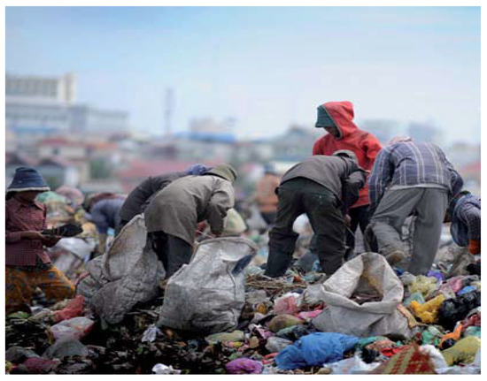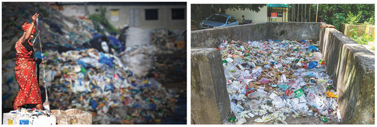 The literature on biomass, bioenergy, waste management, Institutional waste, and Sustainable Development Goals (SDGs) were reviewed. Different waste management and waste collection processes and scenarios were viewed and analysed. Informal waste collection approaches were observed in Dhaka City. Moreover, the waste management used by different institutes, their waste management activities, and practices were recorded. Waste pickers in many developing countries such as Bangladesh (locally called “Tokai”) are mainly women and children (10–15 years old) who are at high risk of health hazards, for example, due to contamination, infectious diseases, and disease vectors (Figure 6).