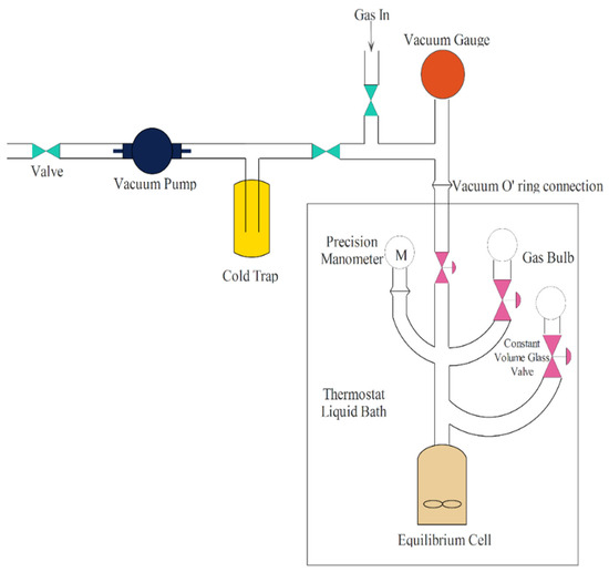 A schematic diagram of the CH4 solubility apparatus [37,40].