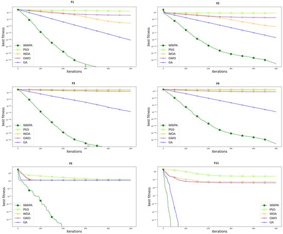 The optimal solution and statistical data show that the proposed WWPA performed much better than PSO and GA. However, popular optimization methods such as PSO and GA did not perform well compared with other algorithms when tested against benchmark functions. In addition, compared with DE and GWO, although the algorithm still had benefits, its performance dropped in terms of fixed-dimension multimodal benchmark, likely due to the algorithm’s linear search route, more flexible parameter selection approach, and the insertion of empirical parameters.