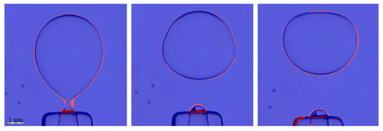 The rising velocity can be measured from the images of the video with a rising droplet, as depicted in Figure 5.